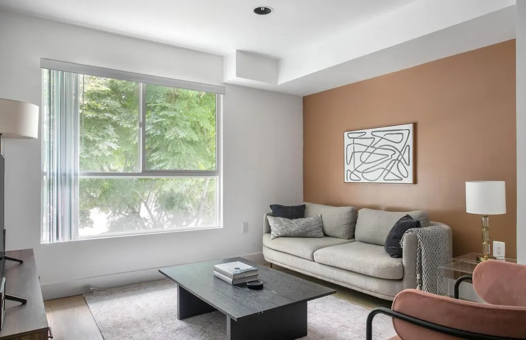 The 60 m² Brentwood 1Br W Gym Rooftop Nr Shops Bars Lax-1076 apartment is situated in West Los Angeles, which is an eclectic, freeway-adjacent district celebrated for its Japanese eateries and shops, 16 minutes' drive from Los Angeles International airport.